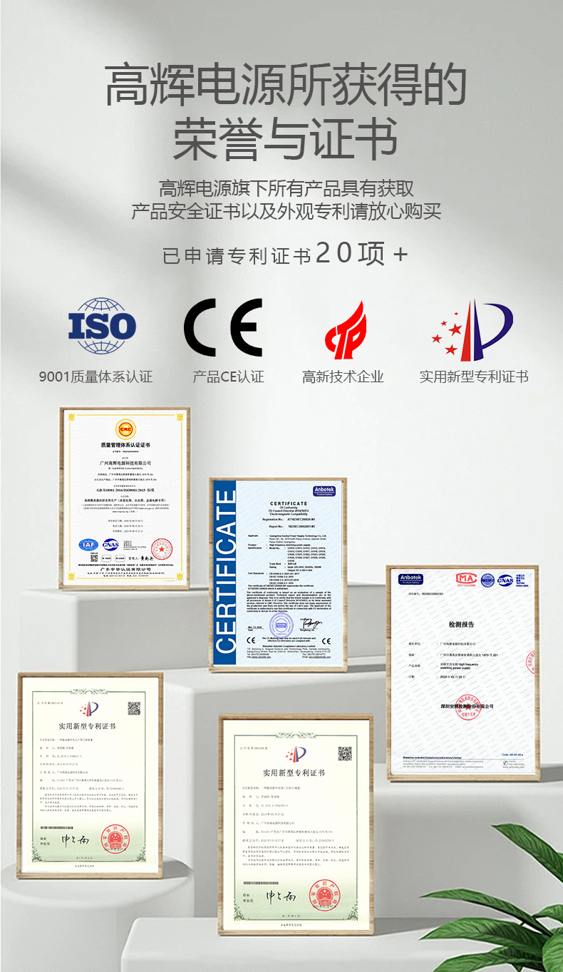 7.超溫保護:當電源有異常使用IGBT、肖特基等半導體器件基座溫度≥80℃時,主控 板內電子開關工作,電源處于封鎖狀態(tài),可有效保護電源。