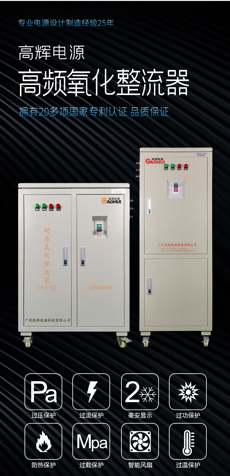 硬質(zhì)氧化電源是一種專門用于硬質(zhì)氧化處理的電源設備。硬質(zhì)氧化是一種通過在金屬表面形成硬質(zhì)、耐磨、耐腐蝕的氧化膜來提高金屬性能的表面處理技術。硬質(zhì)氧化電源通過提供穩(wěn)定的電流和電壓,為硬質(zhì)氧化過程提供所需的能量。