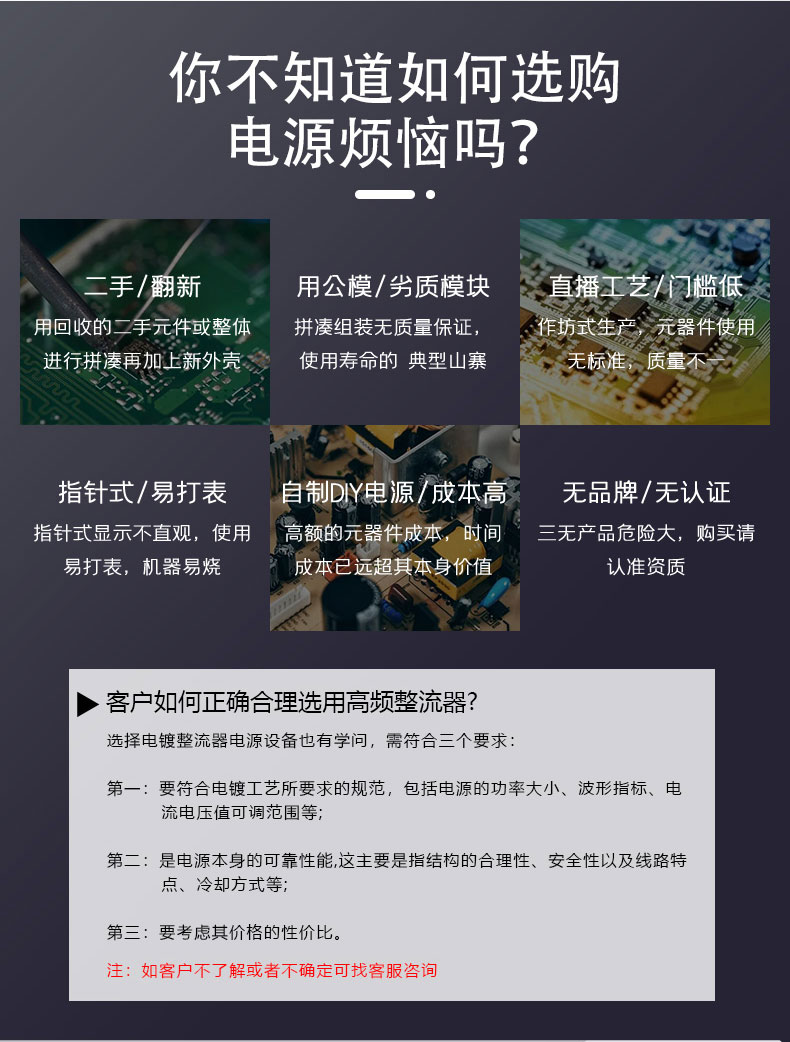 2、高效率:硬鉻電源采用先進的電路設計和控制技術(shù),具有高效率,能夠快速、高效地完成電鍍?nèi)蝿铡?