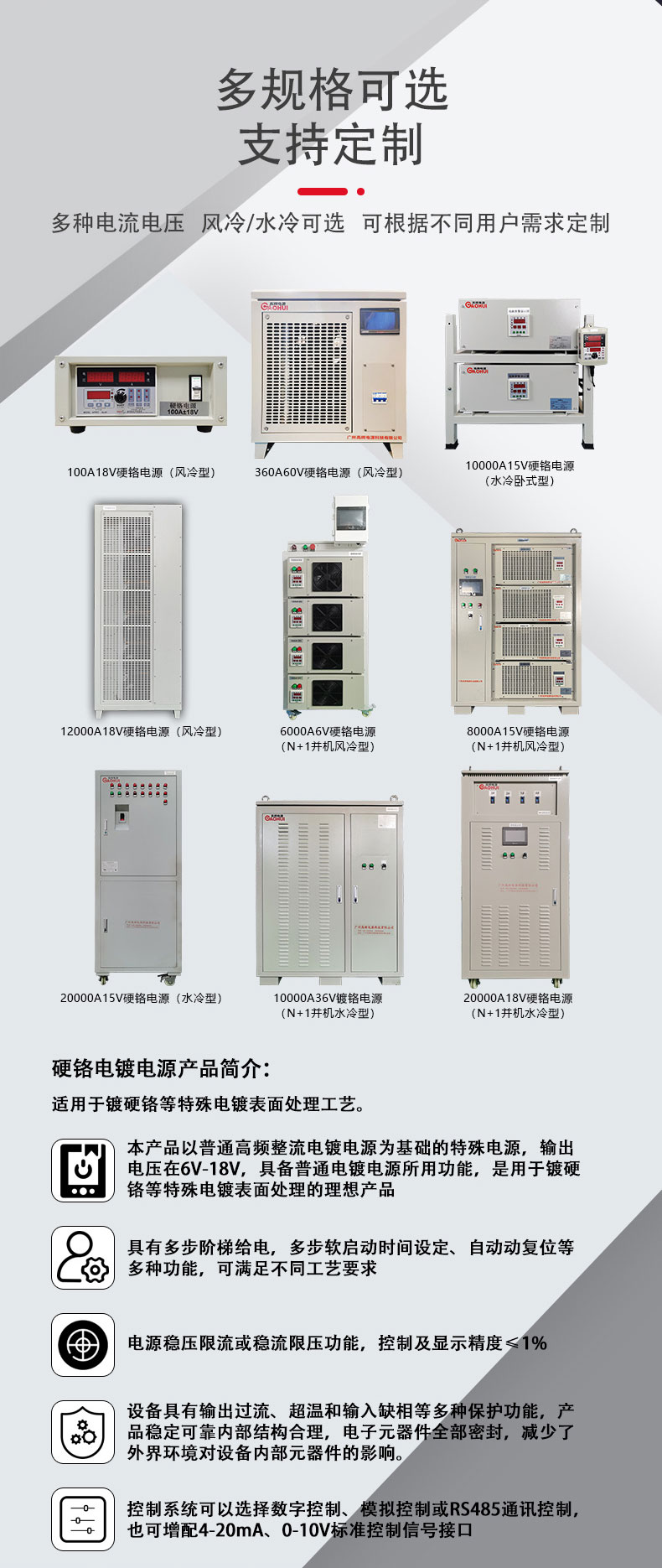 4、安全性:硬鉻電源具備過流、過壓、過熱等保護功能,確保設備的安全運行,避免意外事故發(fā)生。